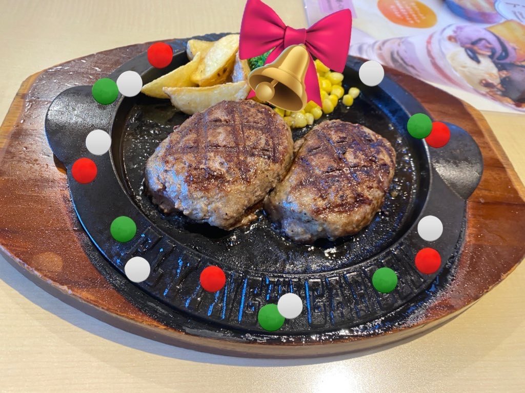 爆弾ハンバーグの鉄板、丸くてまるでクリスマスリースみたいですよね☺️