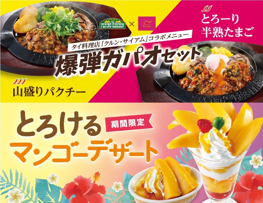 あっという間に5月ももうすぐ終りですね! 【告知】6月1日からフライングガーデン全店で「タイ料理フェア」がスタートします!🇹🇭ぜひご期待くださいませ😆 今週末もご来店お待ちしております👩🍳 *爆ハン・キングセットは5月31日まで!お急ぎくださいませ(^^)/