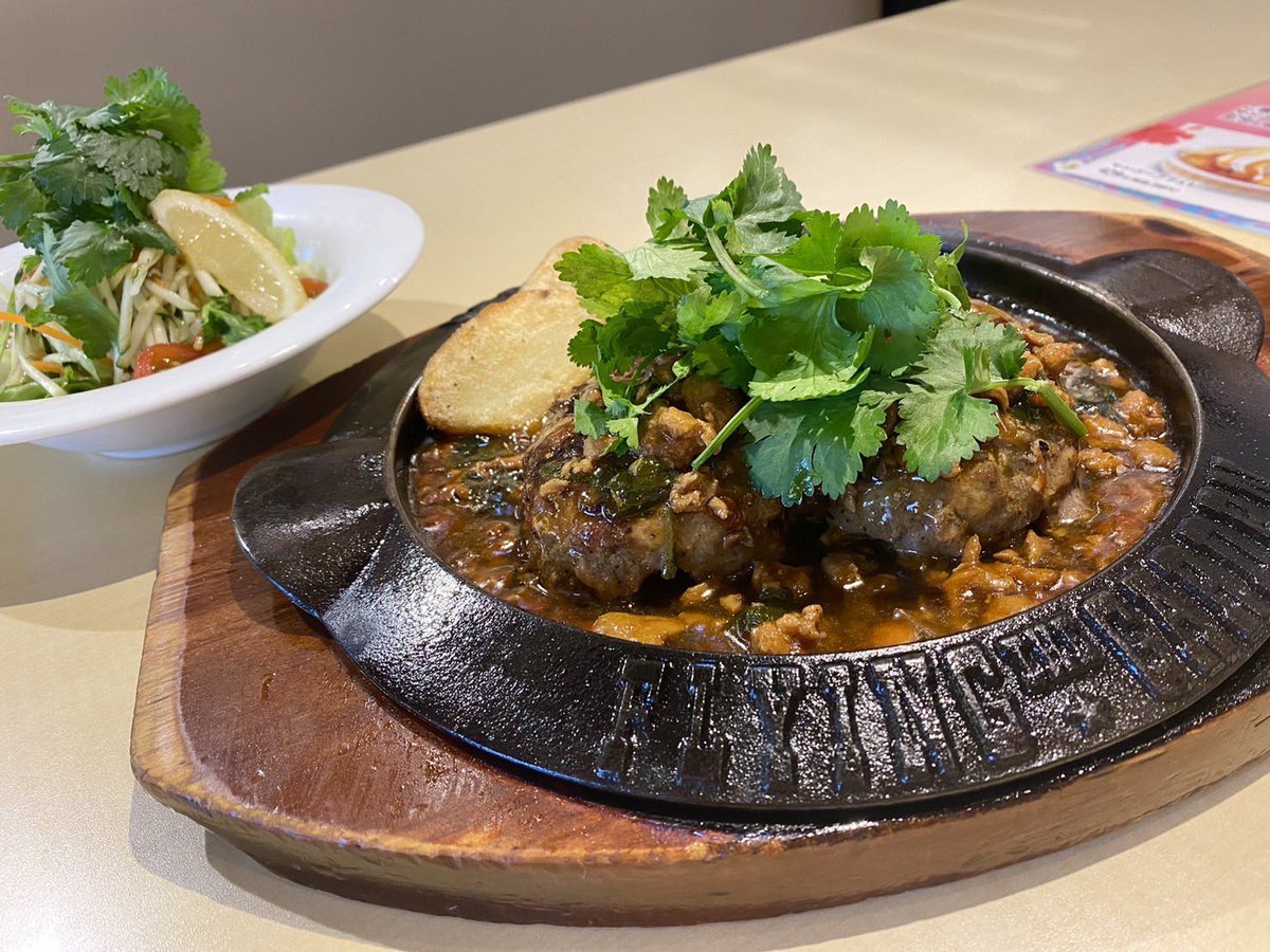 爆弾ハンバーグにトッピングするパクチーは別添えで提供しますので、お好みの量でお召し上がりいただけます😋