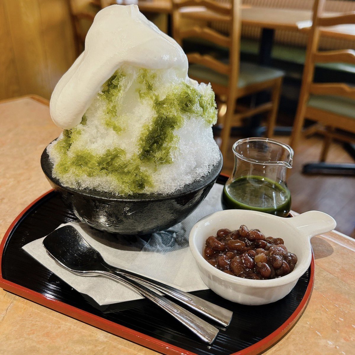 フライングガーデンふんわーりかき氷🍧本日も大変な暑さですね😓こんな日にはかき氷がサイコーに美味しいですね😋京都産宇治抹茶使用...