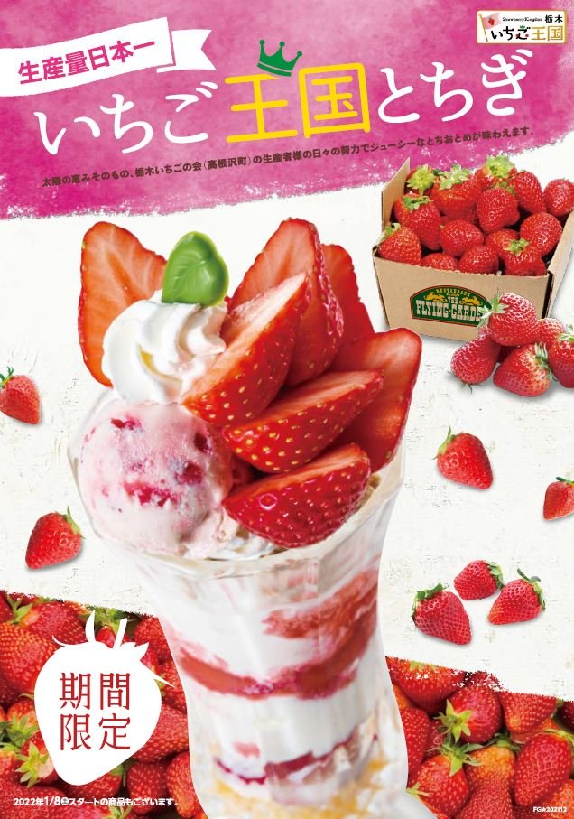 【期間限定!Strawberry Dessert】本日1/15は『いちごの日』です!大好評販売中のフライングガーデンのいちごはいかがですか?栃木...