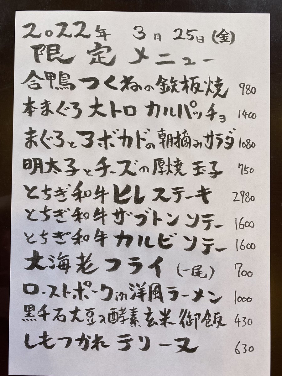 本日の限定& #テイクアウト メニューです。