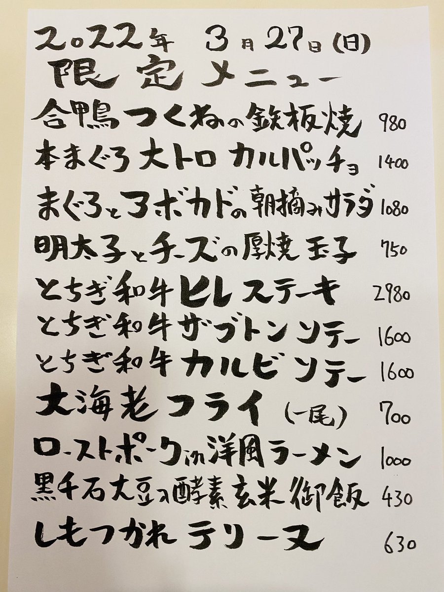 本日の限定 #テイクアウト メニューです。21時00分 フードラストオーダー21時30分 ドリンクラストオーダー22時00分 クロー...