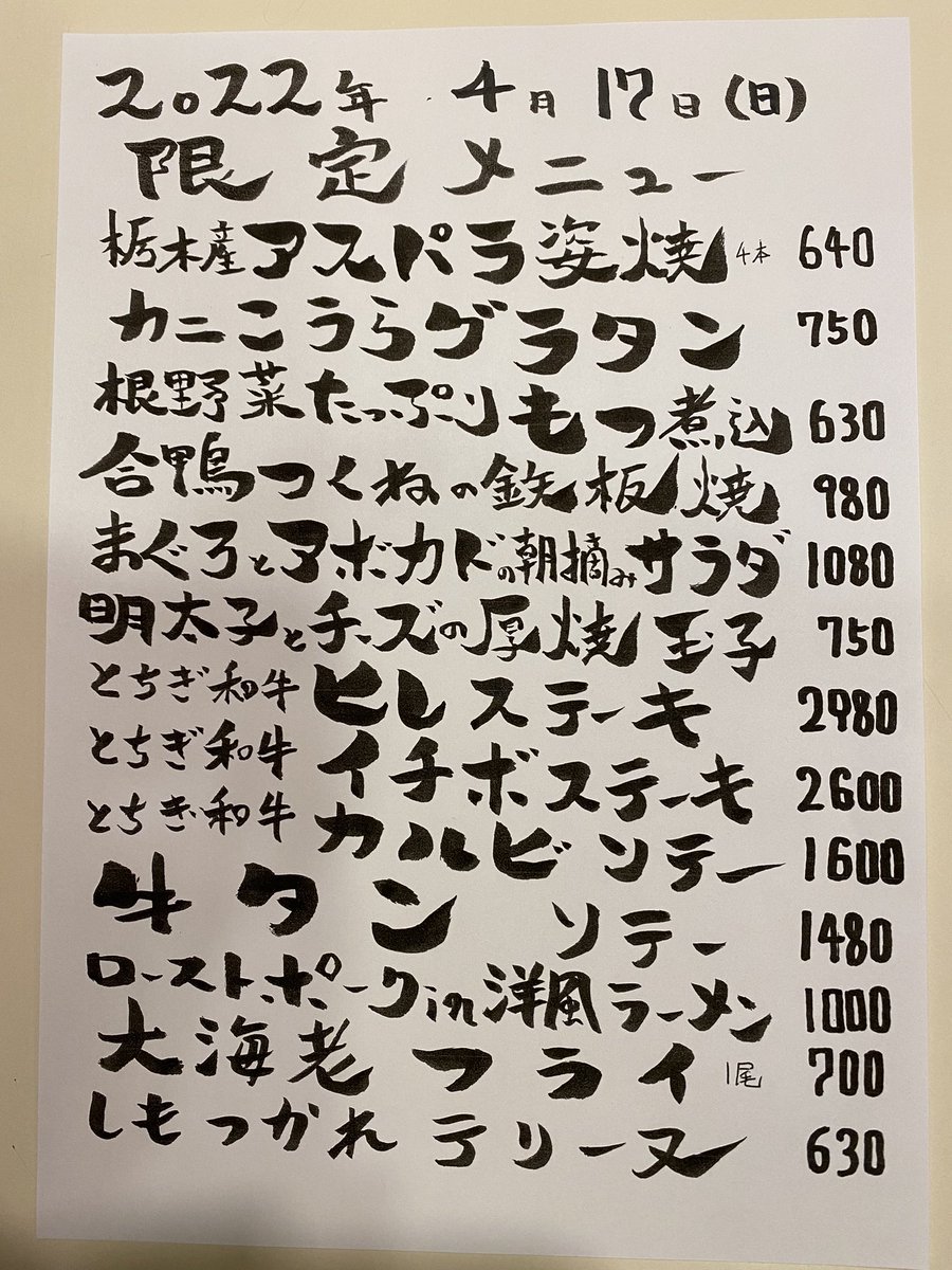 本日の限定 #テイクアウト メニューです。本日から #選挙割 始まります(投票済証掲示でお食事券500円プレゼント) #とちまる安...