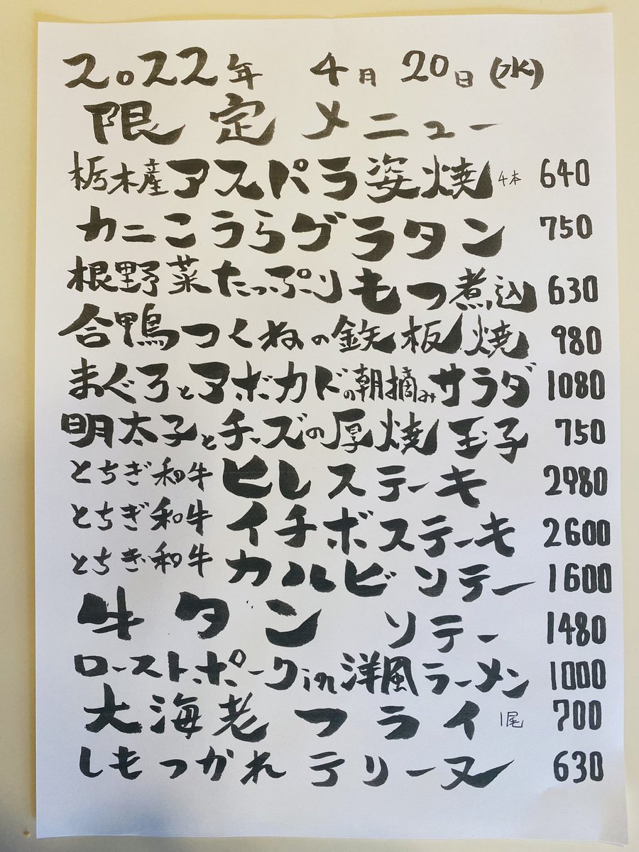 本日の限定& #テイクアウト メニューです。
