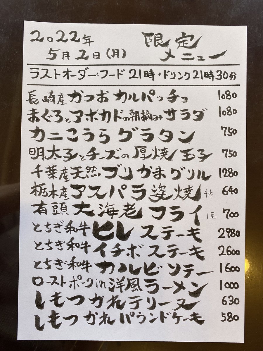 本日の限定 #テイクアウト メニューです。※GW期間中ディナーは、休まず営業致します。 #しもつかれ コース提供不可(しもつかれ...