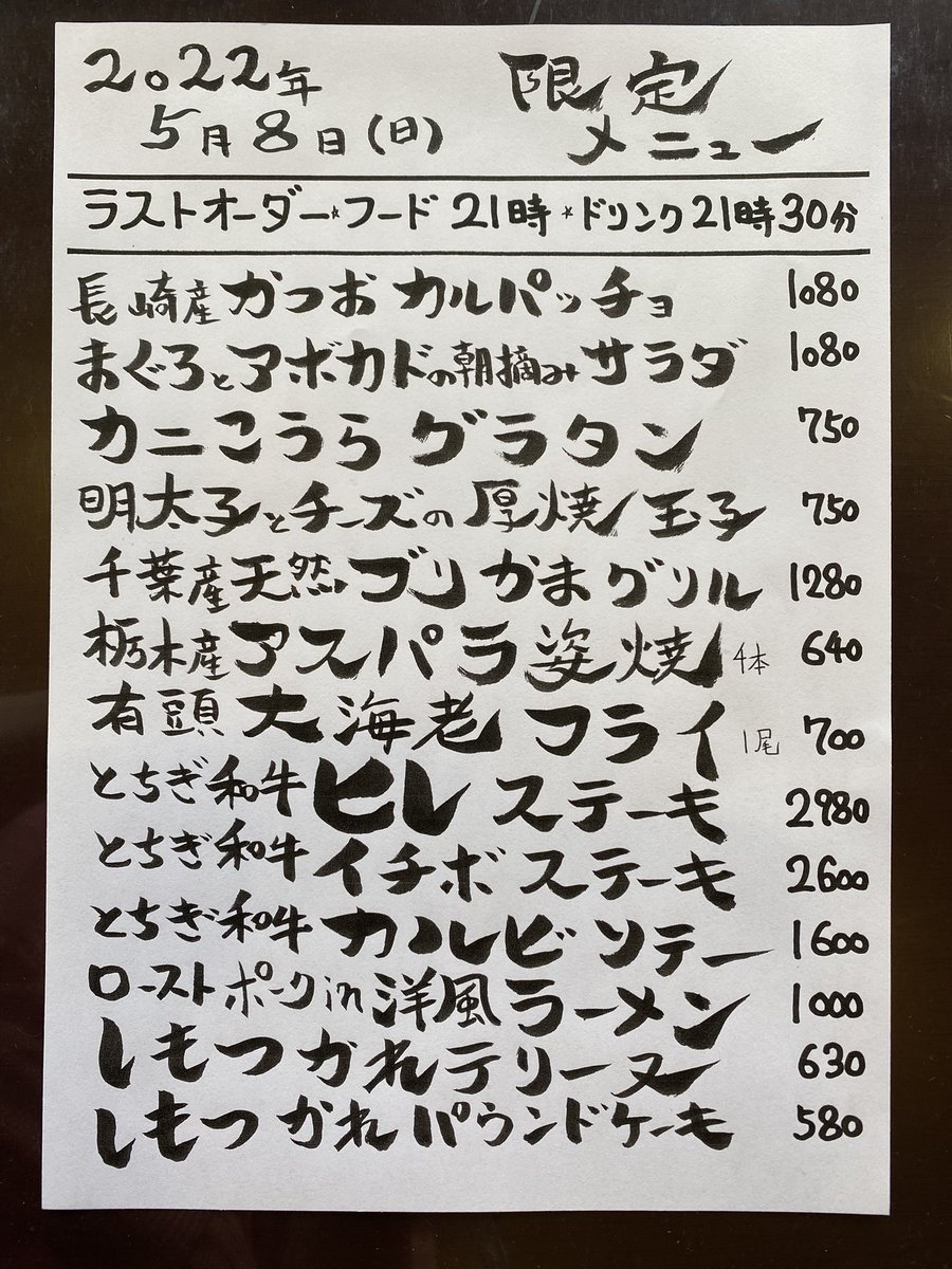 本日の限定& #テイクアウト メニューです。