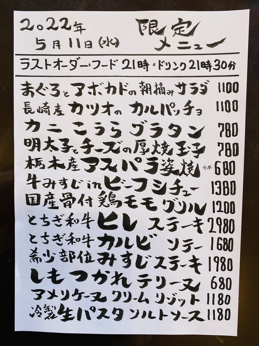 本日の限定& #テイクアウト メニューです。