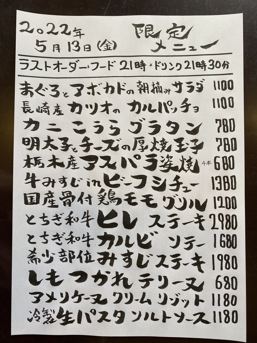 #とちまる安心認証店 #路遊亭 #じゆうてい #栃木市 #栃木駅前 #創作料理 #和牛ヒレステーキ #洋食 #ラーメン #ローストポーク #カルパッチョ #リゾット