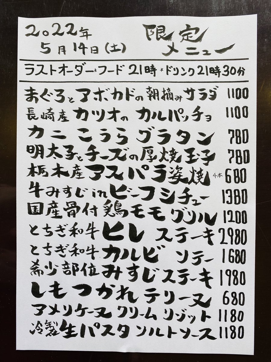 本日の限定& #テイクアウト メニューです。
