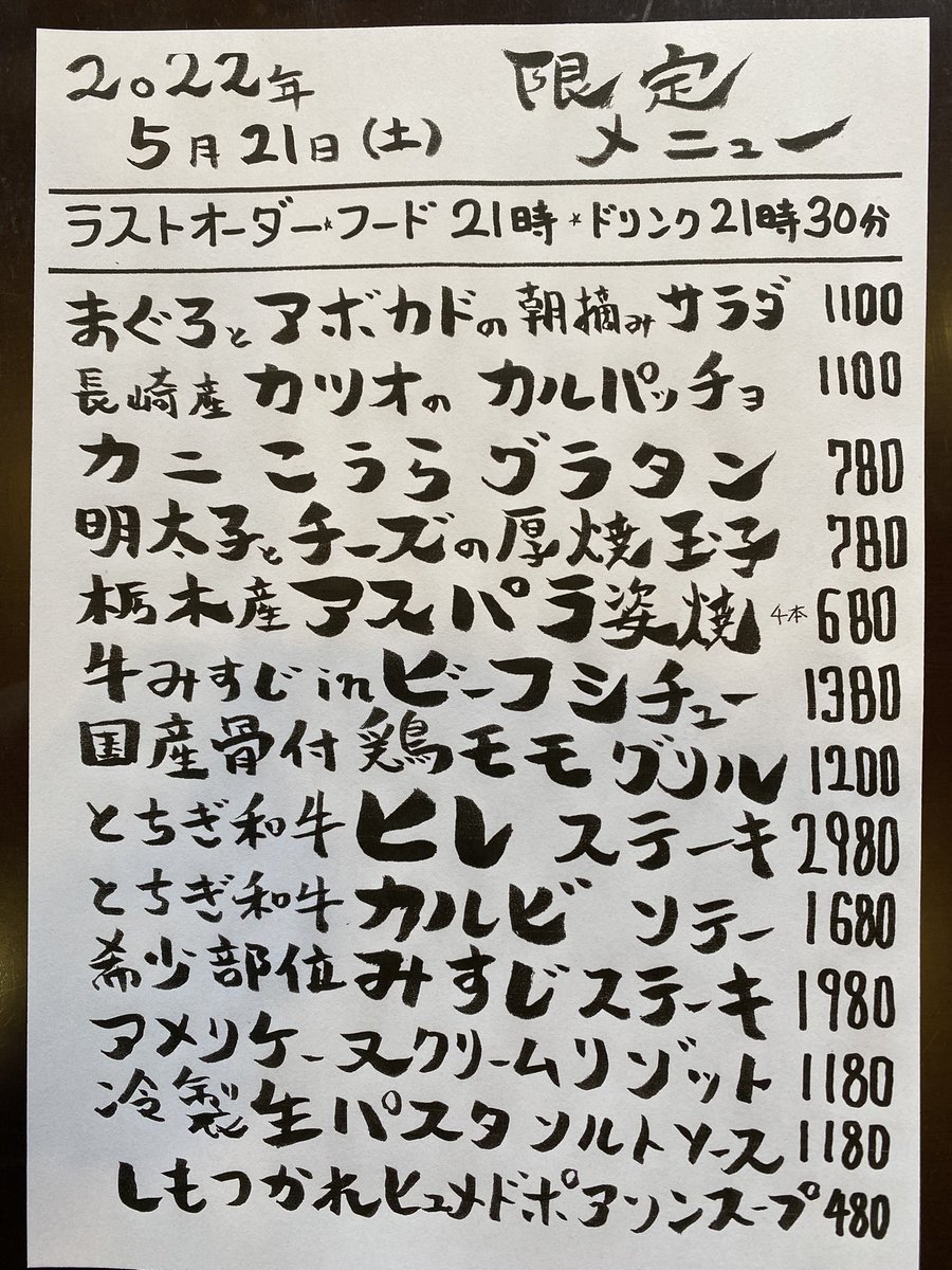 本日の限定& #テイクアウト メニューです。