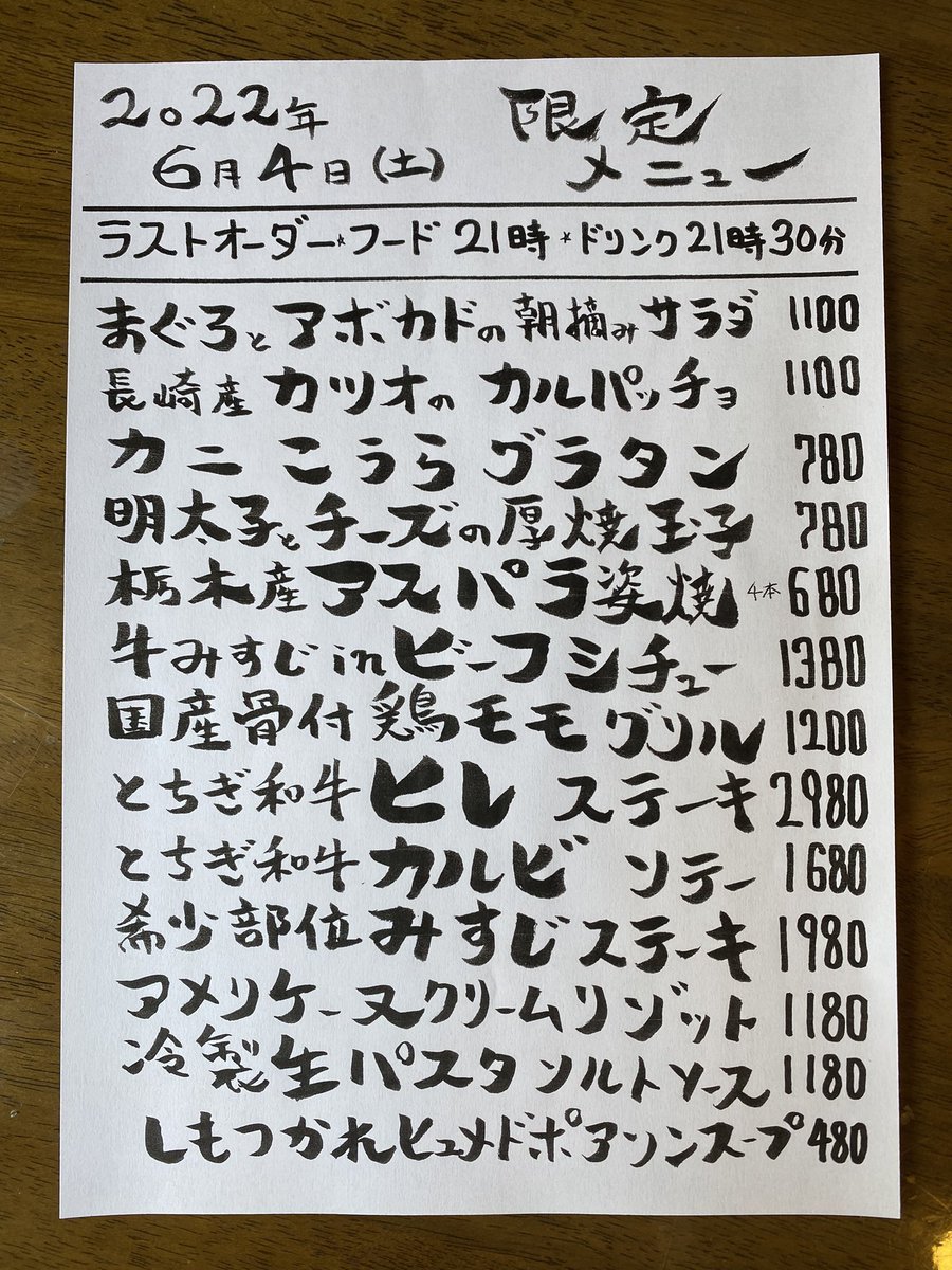 本日の限定& #テイクアウト メニューです。