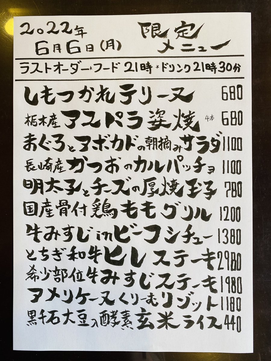 本日の限定& #テイクアウト メニューです。