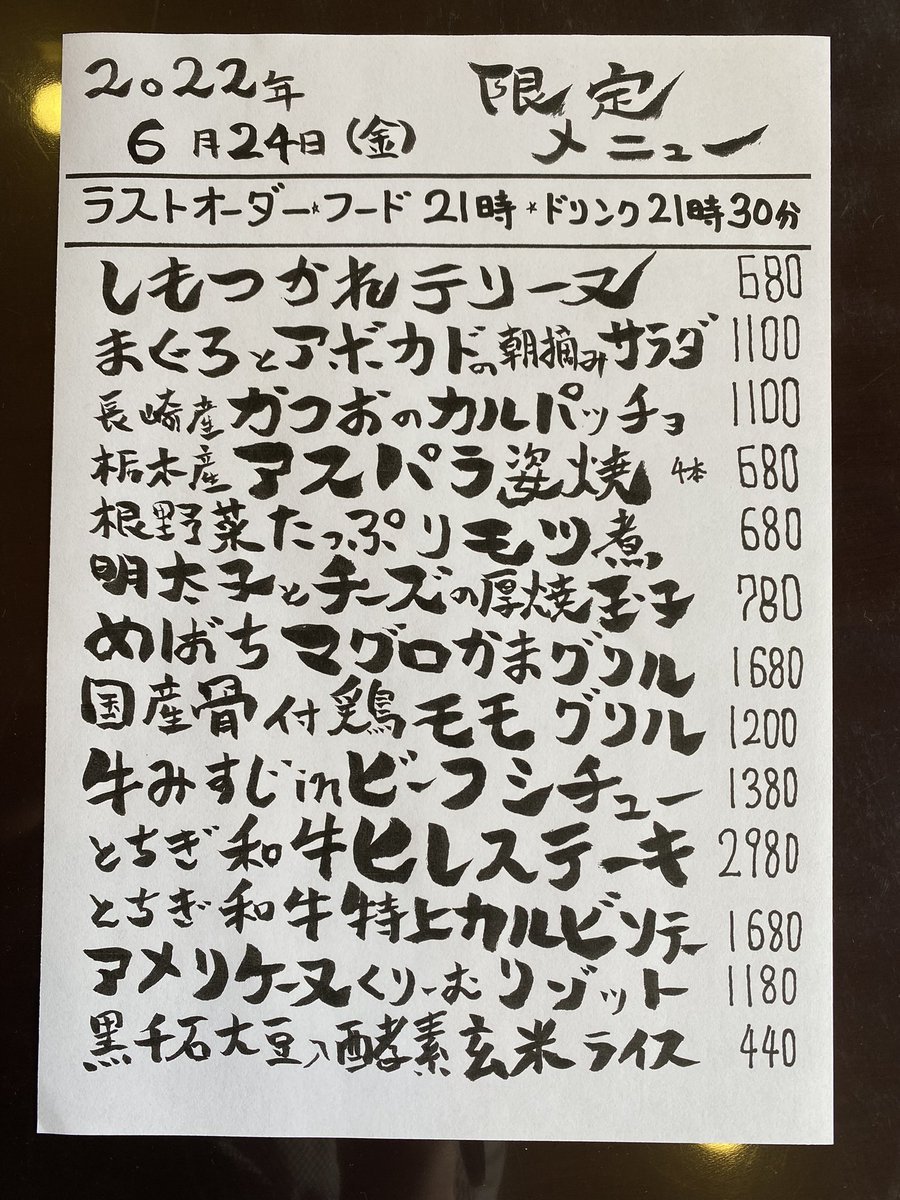 #とちまる安心認証店 #栃木市 #栃木駅前 #じゆうてい #路遊亭 #創作料理 #黒千石大豆 #酵素玄米 #アスパラガス #アボカド #ステーキ #ローストビーフ #生パスタ #アルバイト募集 #カルパッチョ