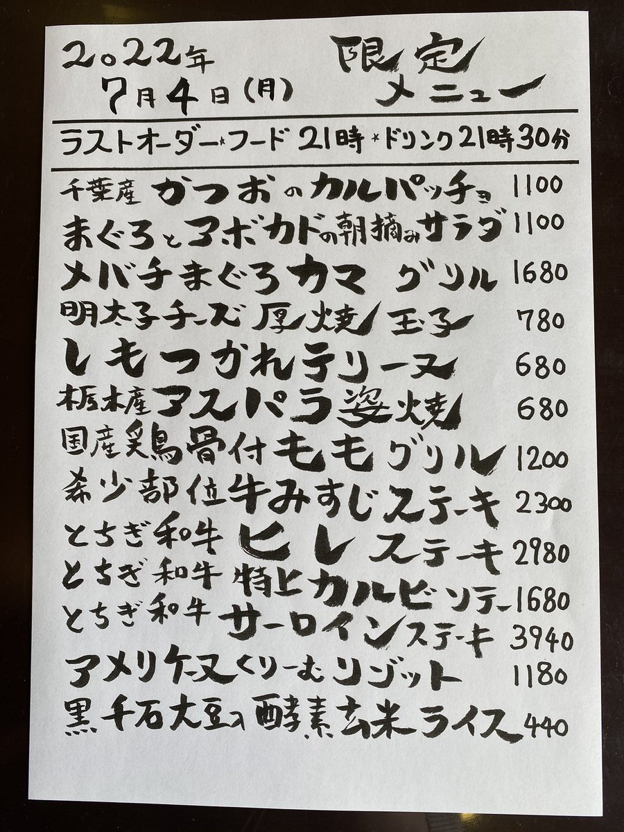 #路遊亭 #じゆうてい #栃木市 #栃木駅前 #創作料理 #無農薬野菜 #和牛ヒレステーキ #カルパッチョ #ローストビーフ #生パスタ