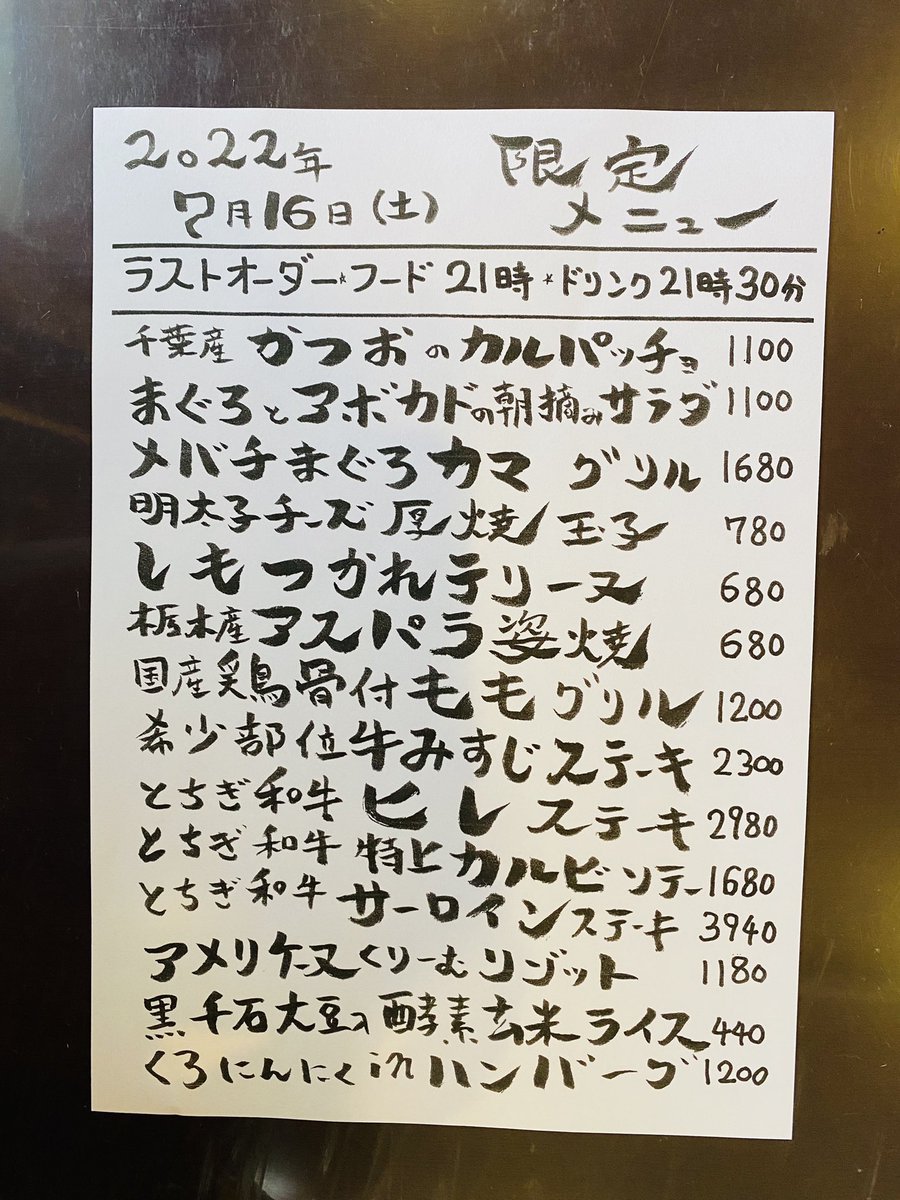 本日の限定& #テイクアウト メニューです。