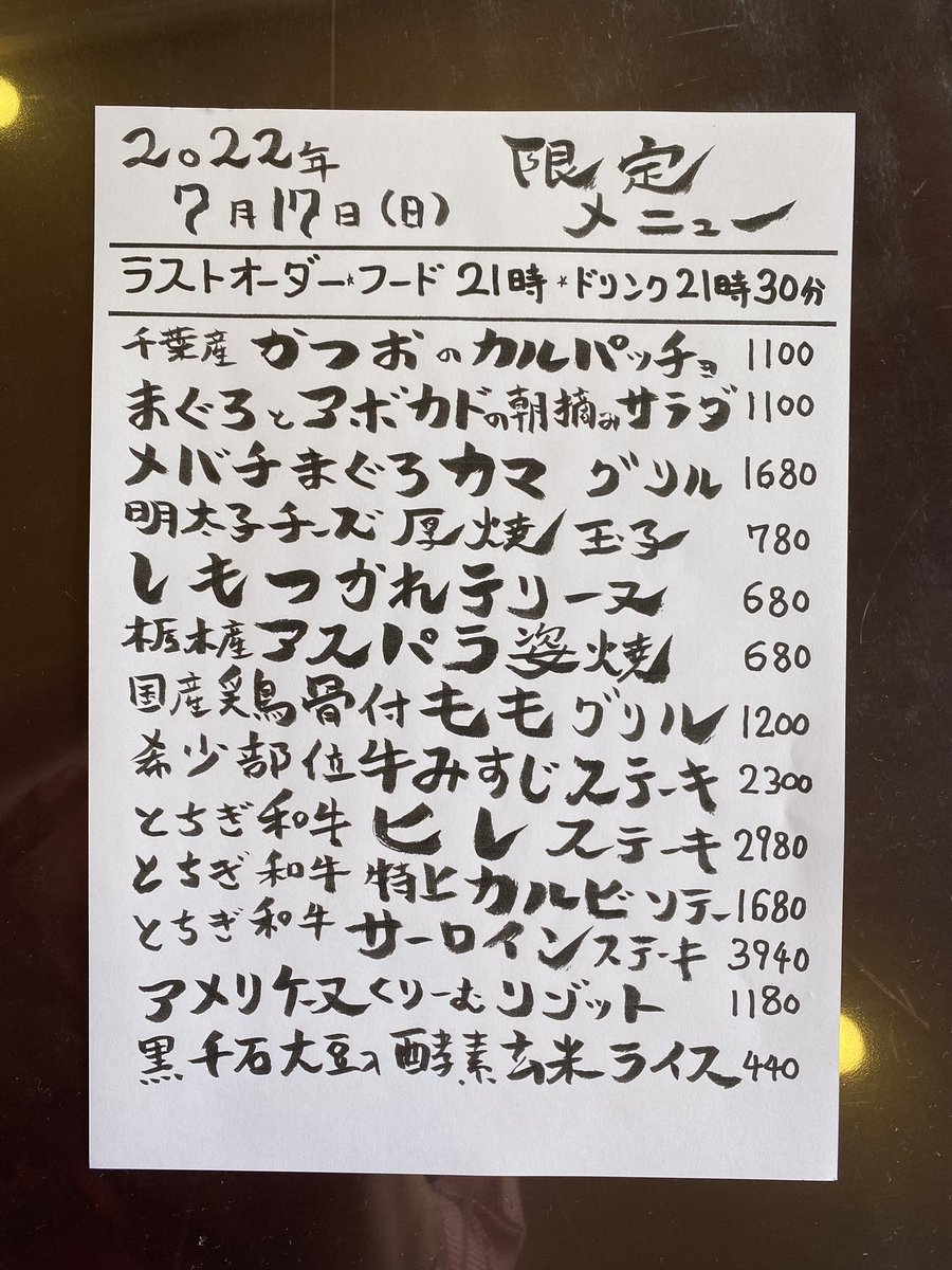 本日の限定& #テイクアウト メニューです。