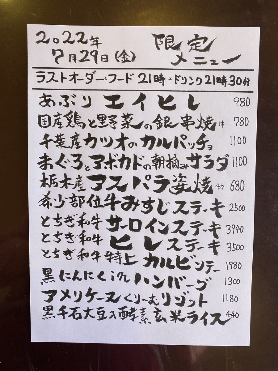 本日の限定& #テイクアウト メニューです。