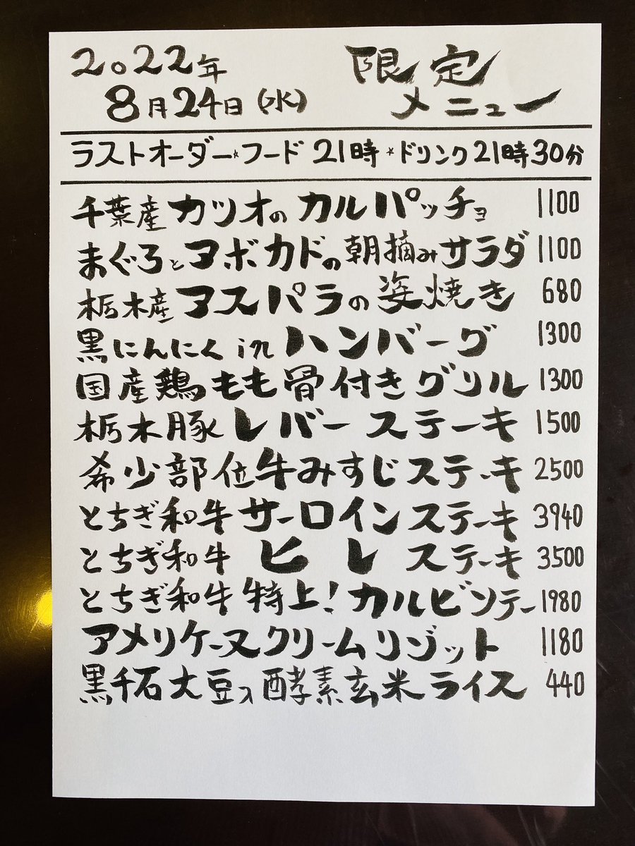 本日の限定& #テイクアウト メニューです。