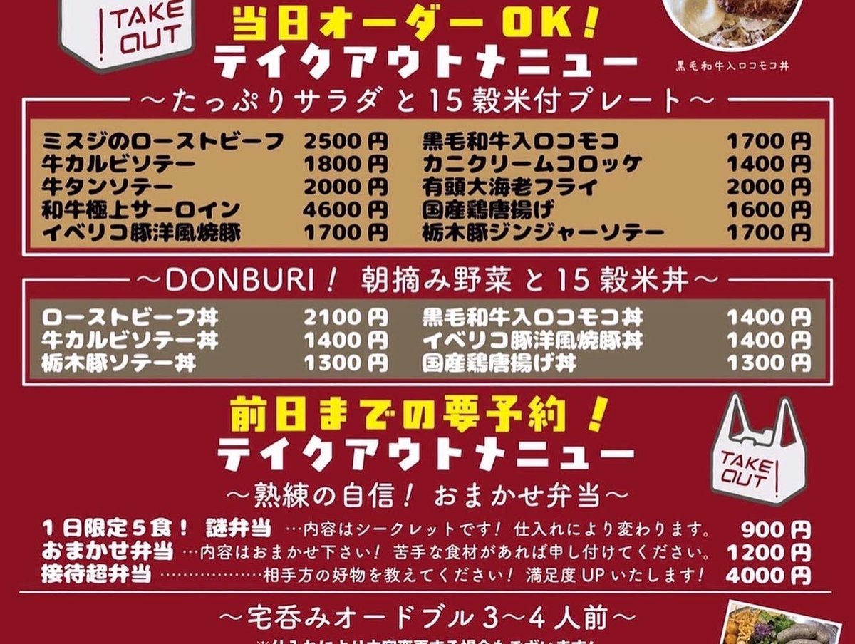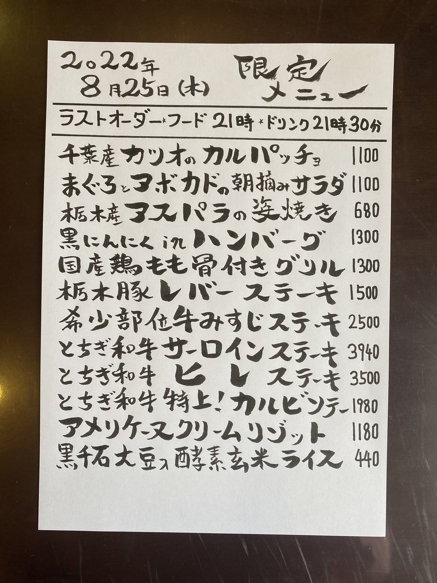 本日の限定& #テイクアウト メニューです。