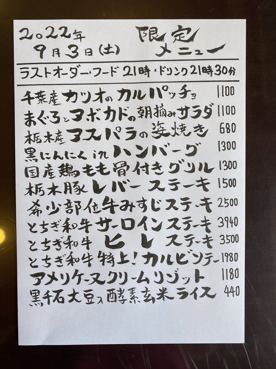 本日の限定& #テイクアウト メニューです。