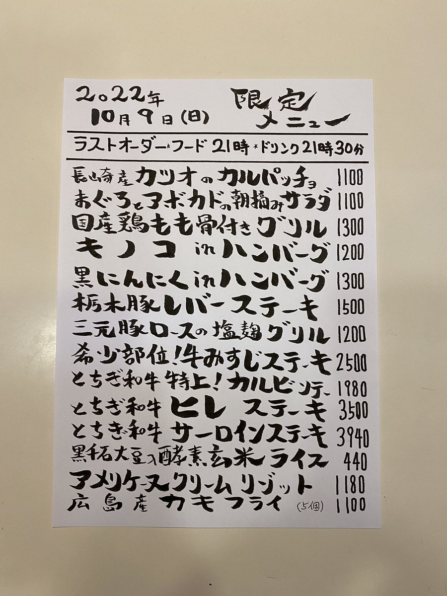 本日の限定& #テイクアウト メニューです。