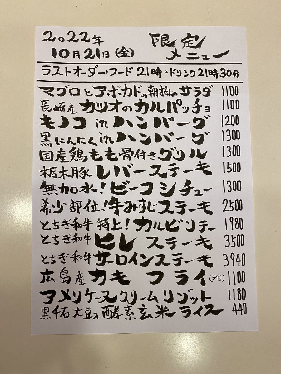 本日の限定& #テイクアウト メニューです。