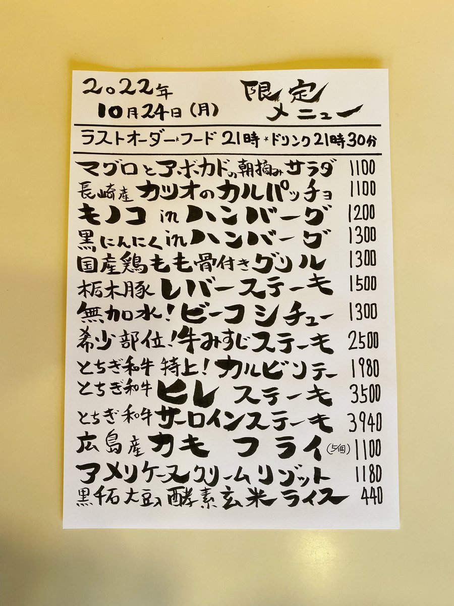 本日の限定& #テイクアウト メニューです。