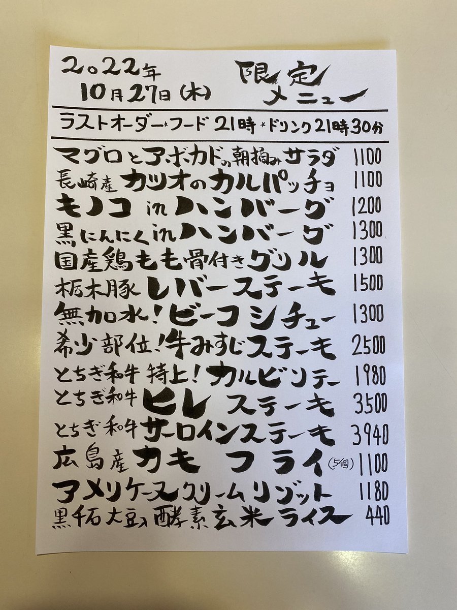 本日の限定& #テイクアウト メニューです。 #しもつかれ コース提供不可(しもつかれ #テリーヌ は提供可能です) #ワカモレ は #...