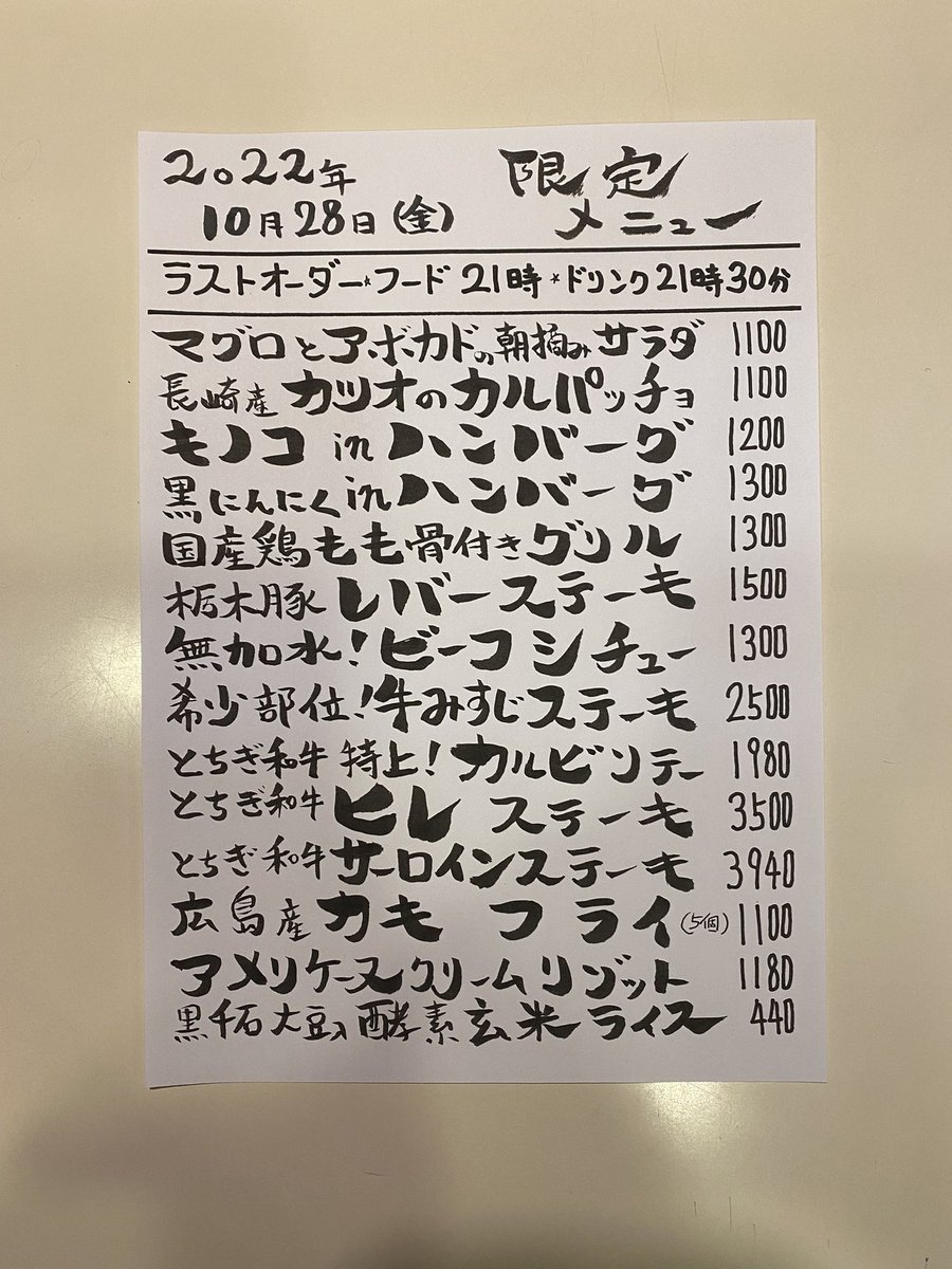 本日の限定& #テイクアウト メニューです。