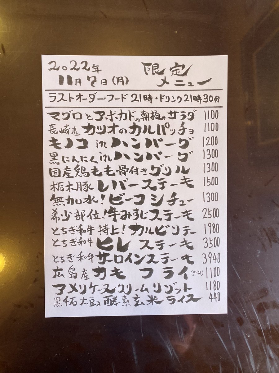 本日の限定& #テイクアウト メニューです。