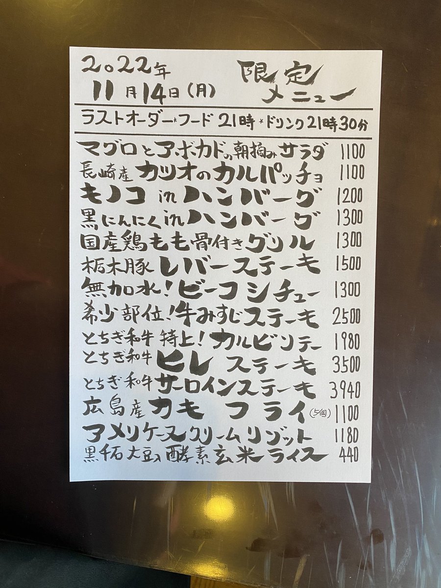 本日の限定& #テイクアウト メニューです。