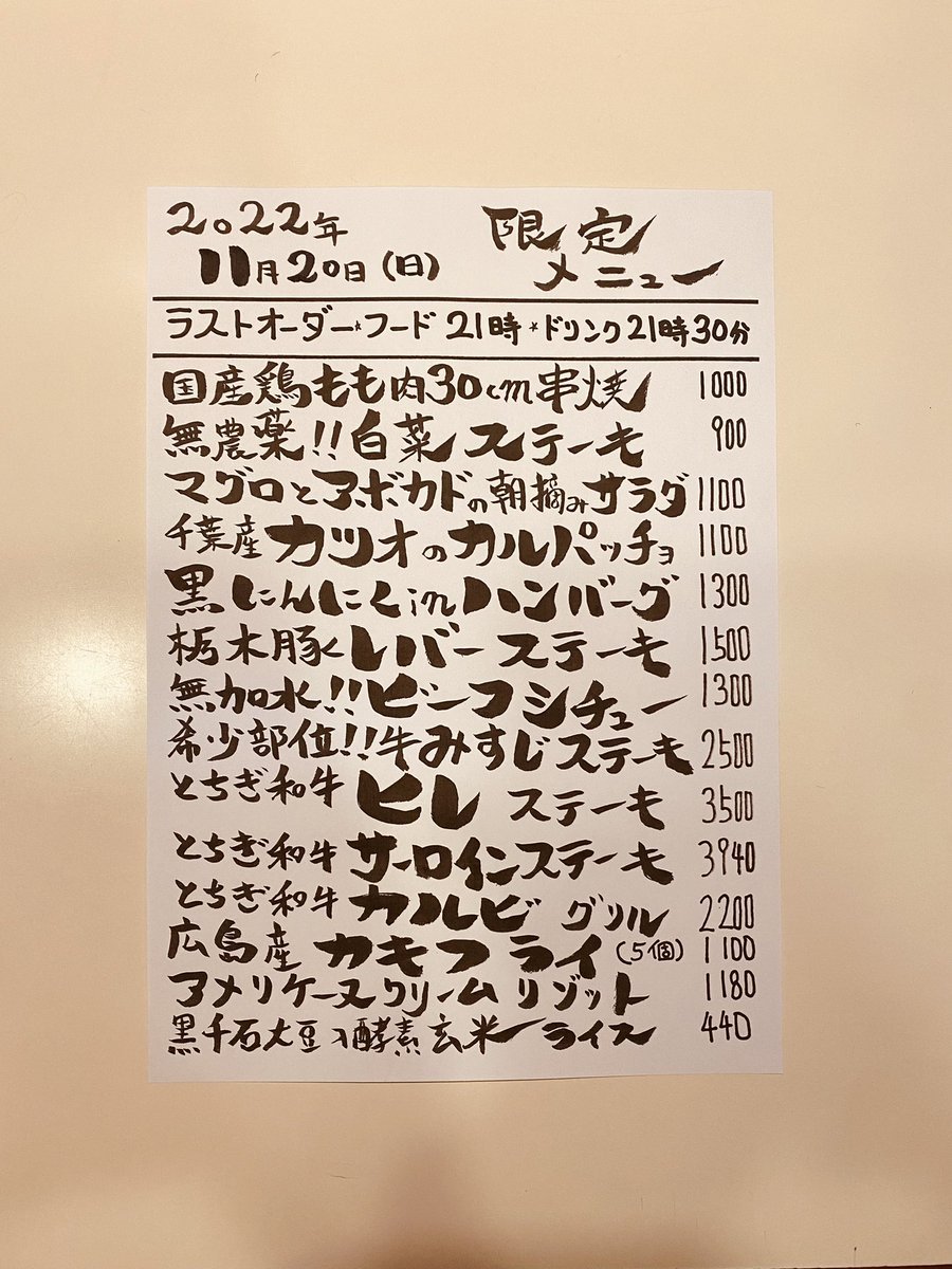 本日の限定& #テイクアウト メニューです。