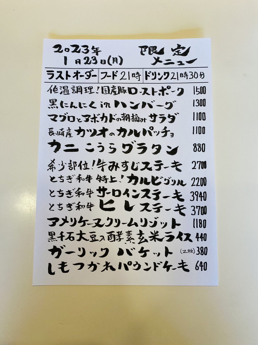 本日の限定& #テイクアウト メニューです。
