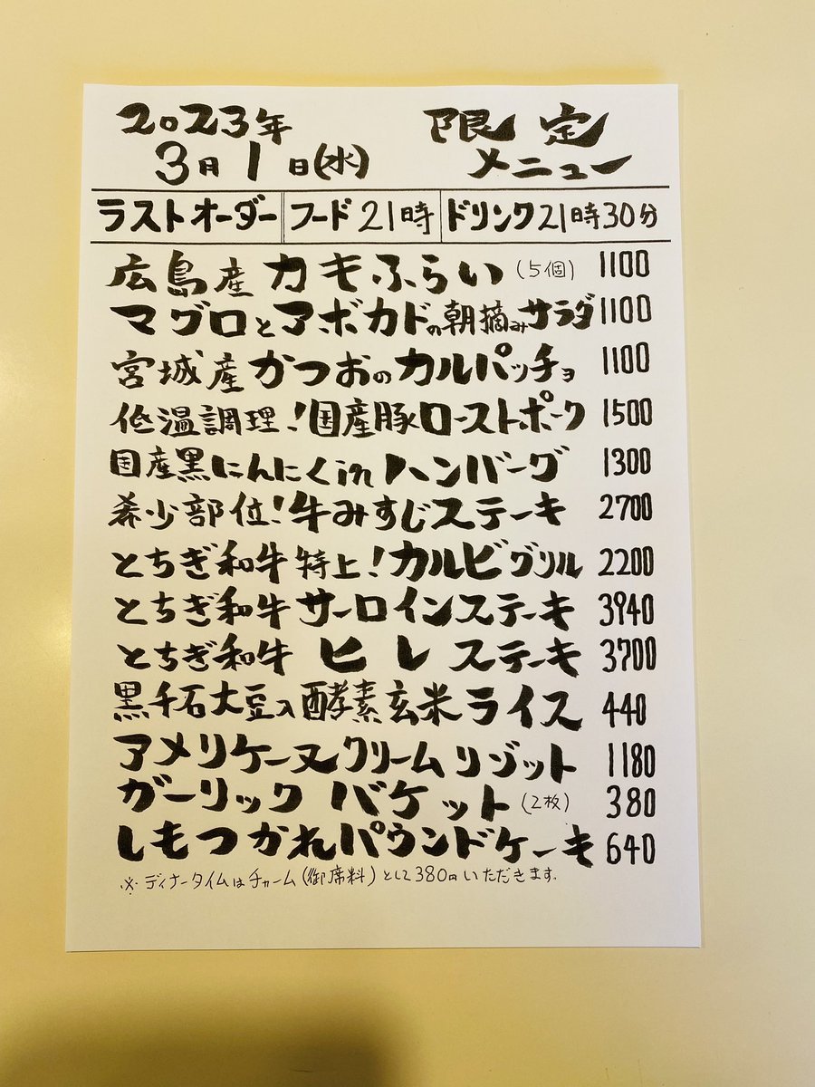本日の限定& #テイクアウト メニューです。
