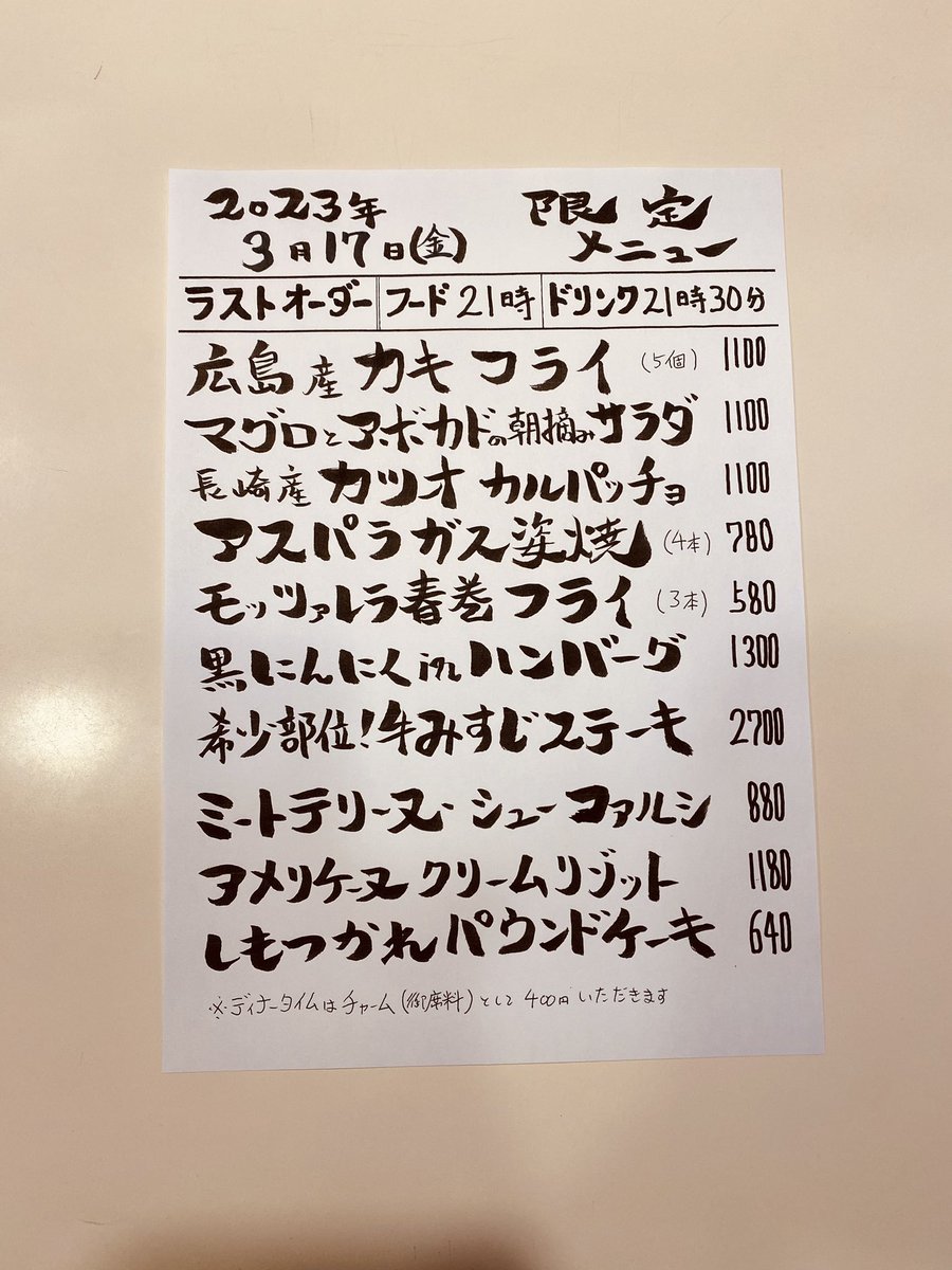 本日の限定& #テイクアウト メニューです。