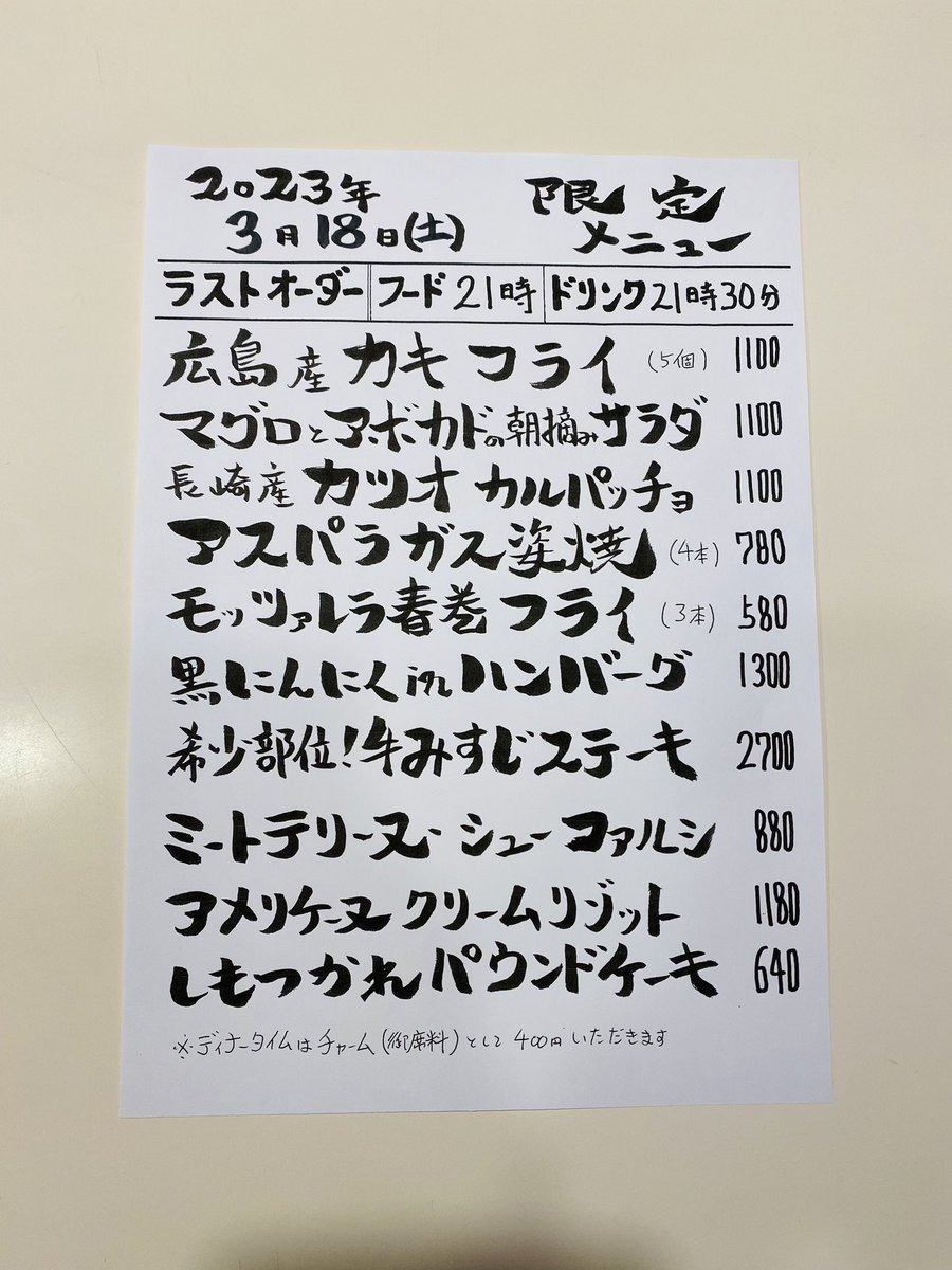 本日の限定& #テイクアウト メニューです。