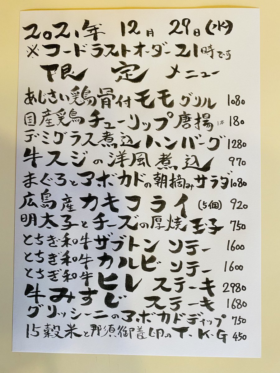 本日の限定& #テイクアウト メニューです。 今年も開催 #カウントダウンパーティー