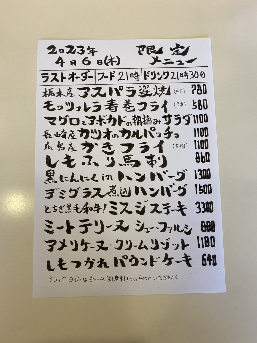 本日の限定& #テイクアウト メニューです。