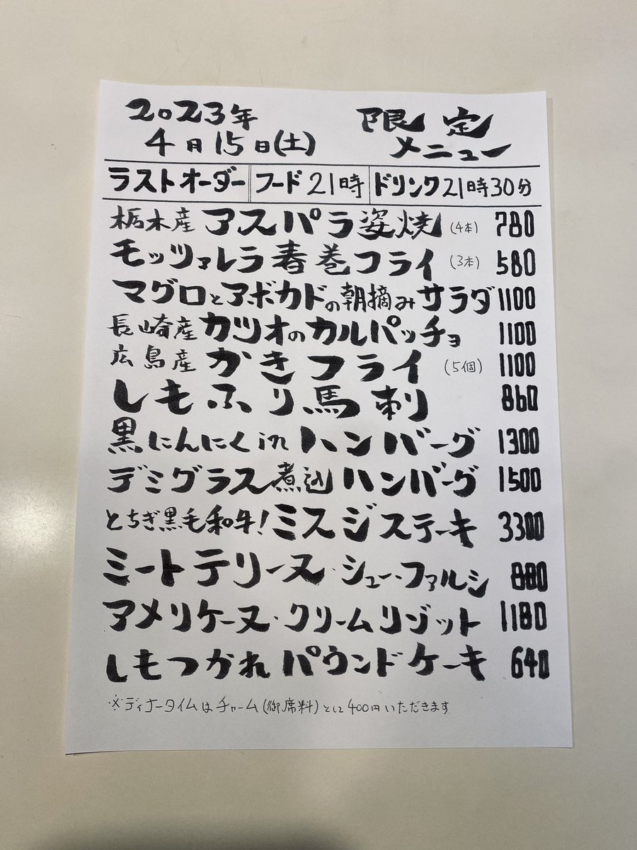 本日の限定& #テイクアウト メニューです。