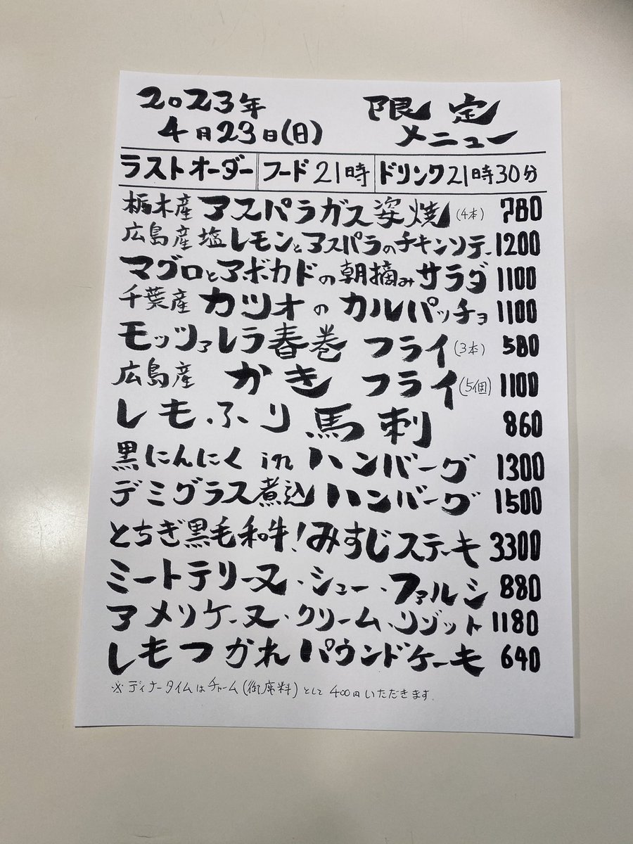本日の限定& #テイクアウト メニューです。