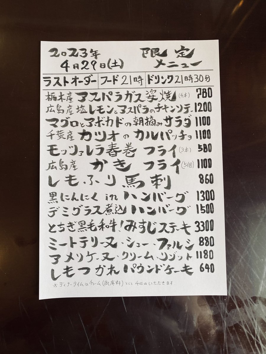 本日の限定& #テイクアウト メニューです。