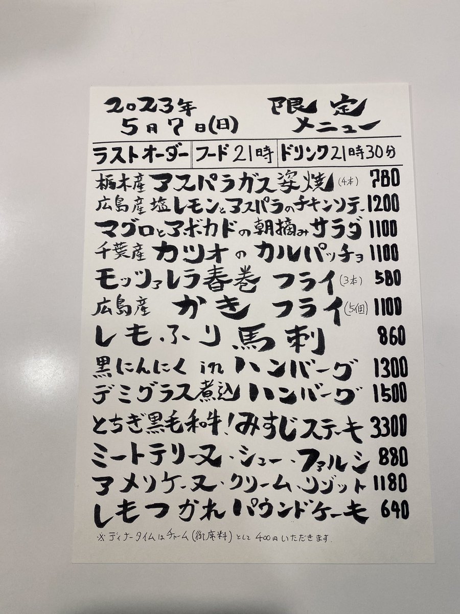 本日の限定& #テイクアウト メニューです。