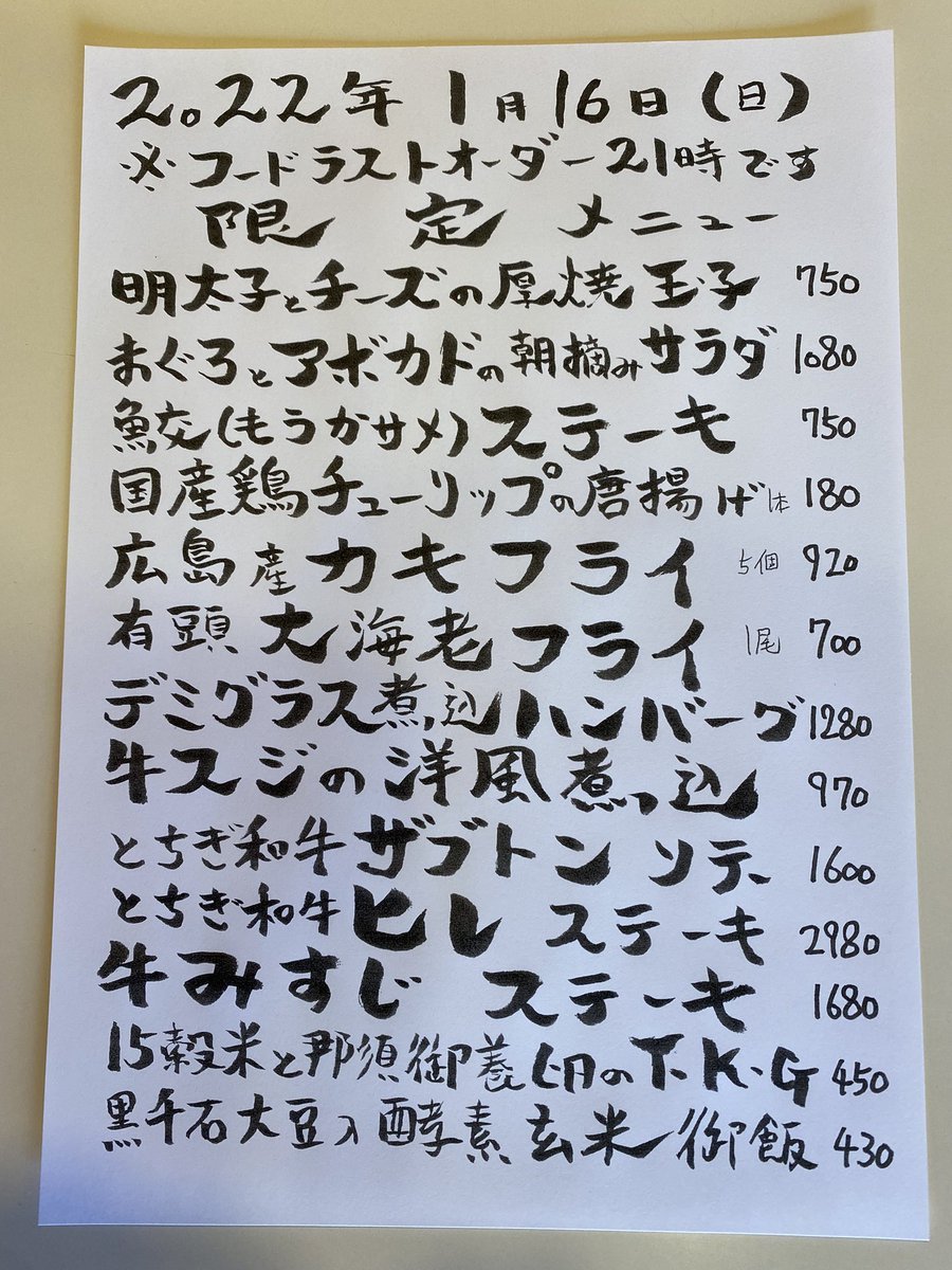 本日の限定 #テイクアウト メニューです。 #Gotoeat #とち介商品券 ご利用可能です🍴21時00分 フードラストオーダー21時30分.....