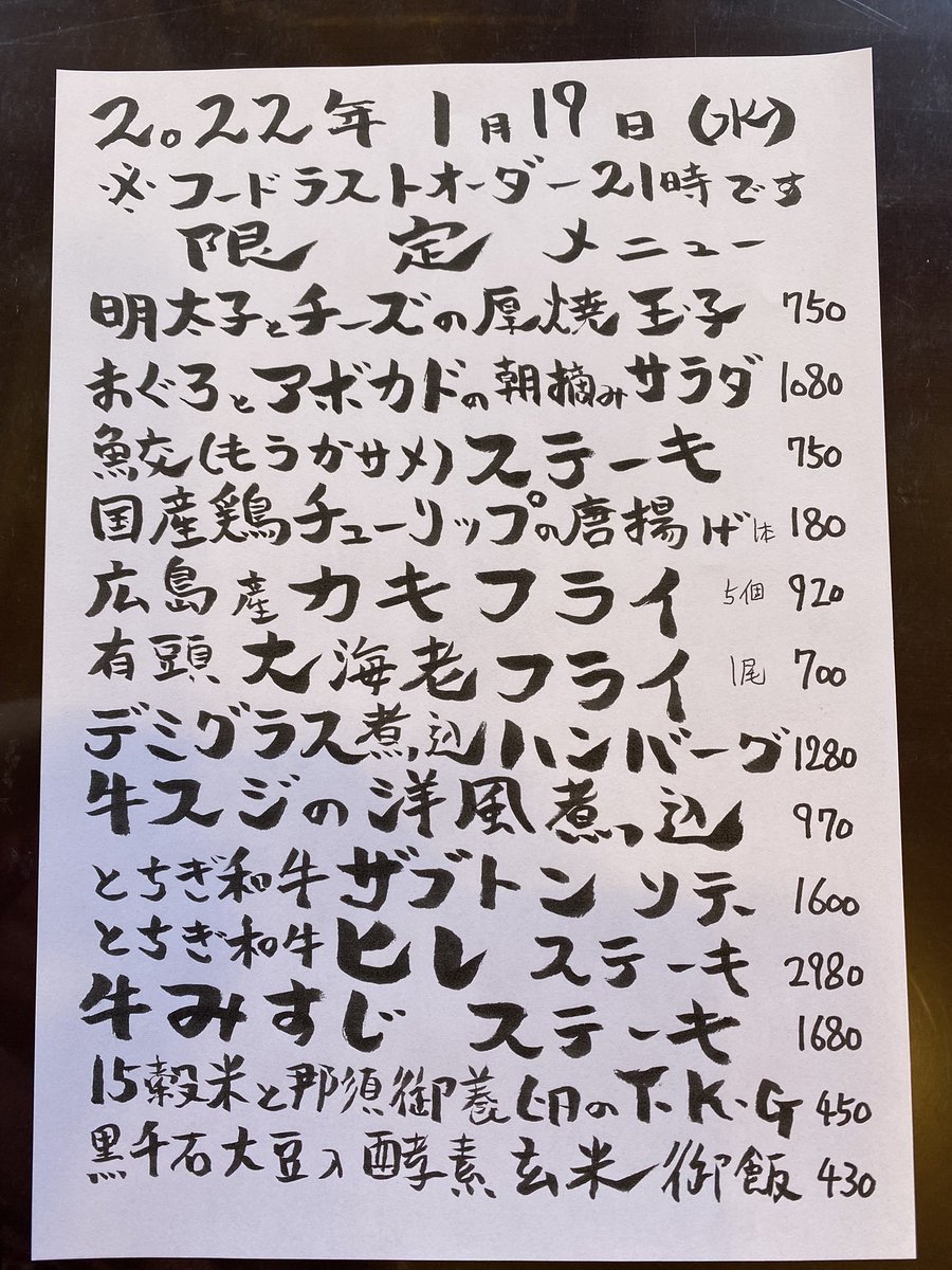 本日の限定 #テイクアウト メニューです。 #Gotoeat #とち介商品券 ご利用可能です🍽21時00分 フードラストオーダー21時30分.....