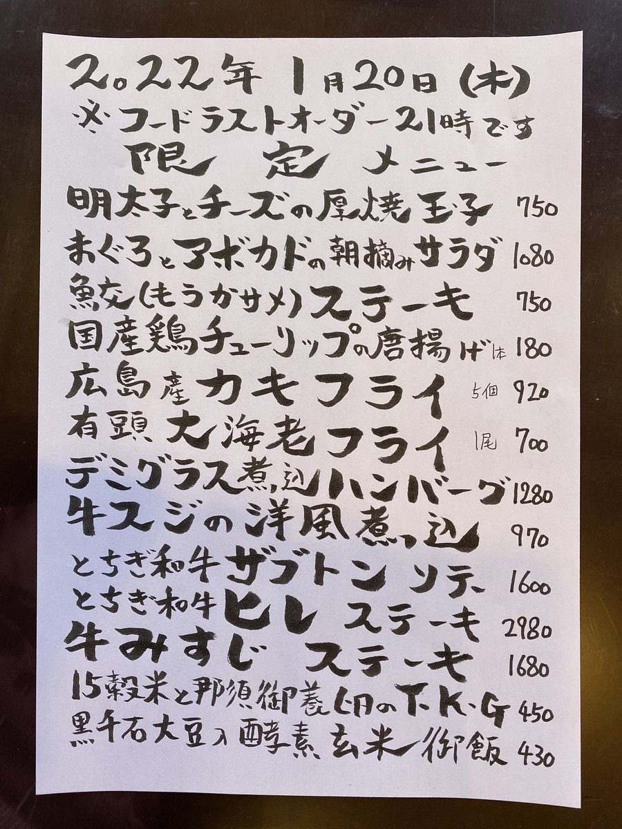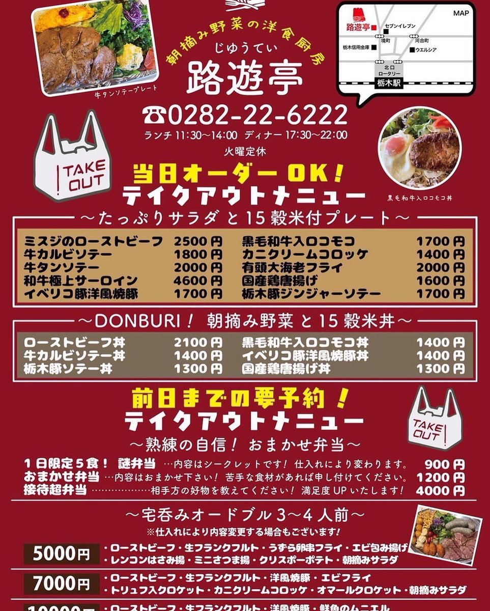 本日の限定 #テイクアウト メニューです。 #Gotoeat #とち介商品券 ご利用可能です🍽21時00分 フードラストオーダー21時30分 ...