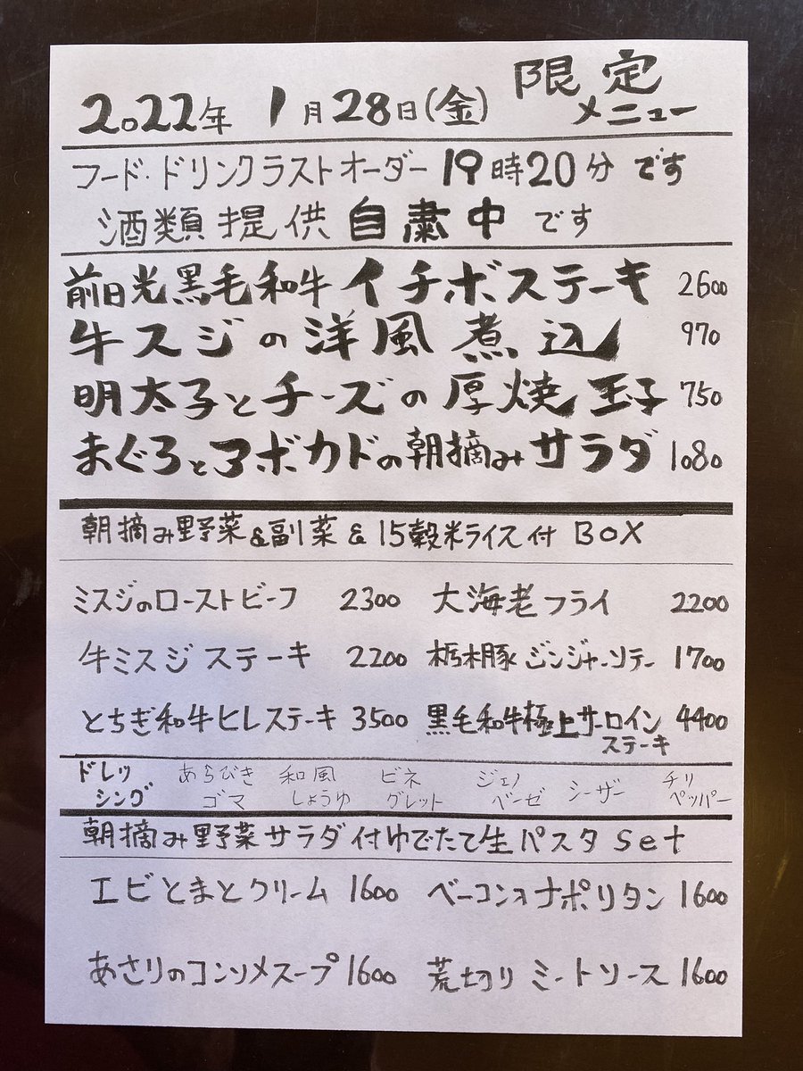 本日の限定 #テイクアウト メニューです。本日も、 #時短営業 #アルコール提供自粛 です。 #Gotoeat #とち介商品券 ご利用可...