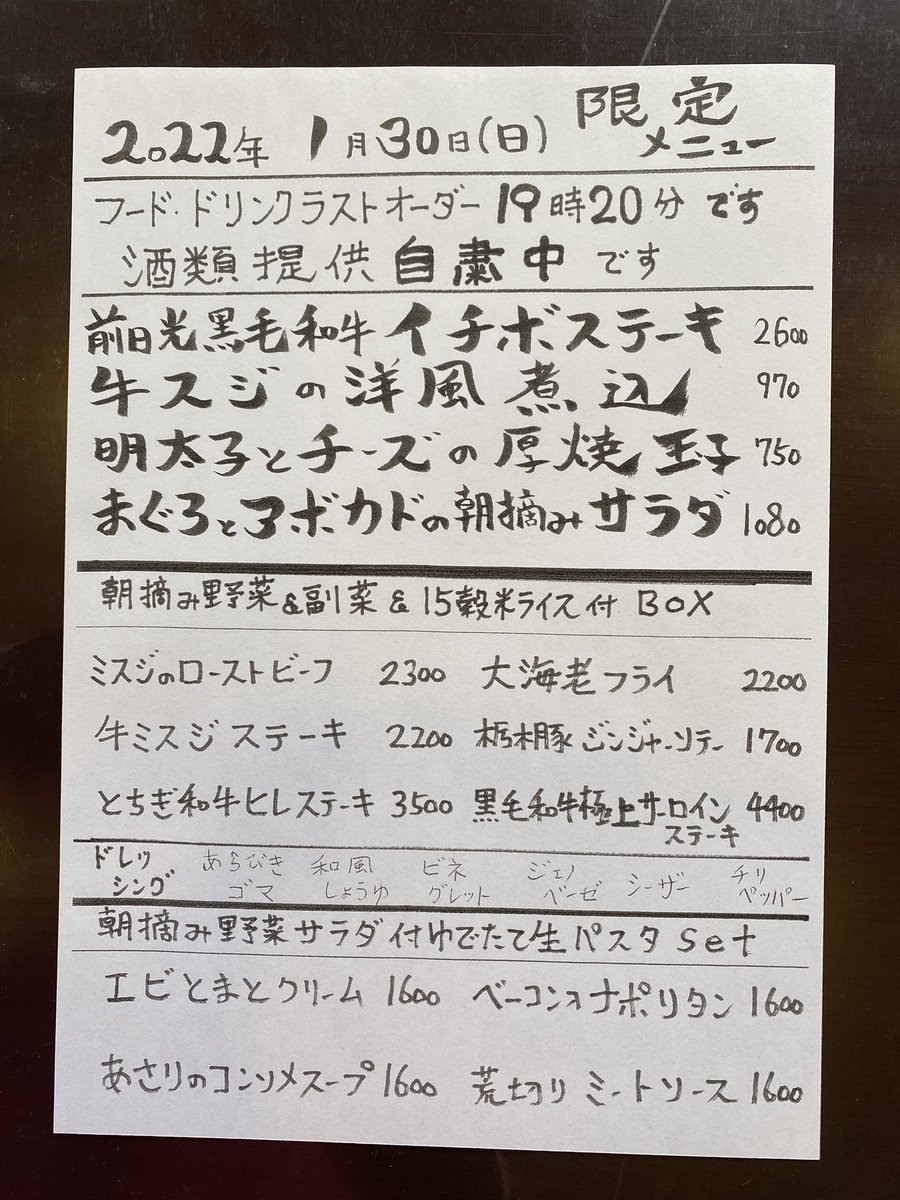 本日の限定& #テイクアウト メニューです。本日も、時短営業です。