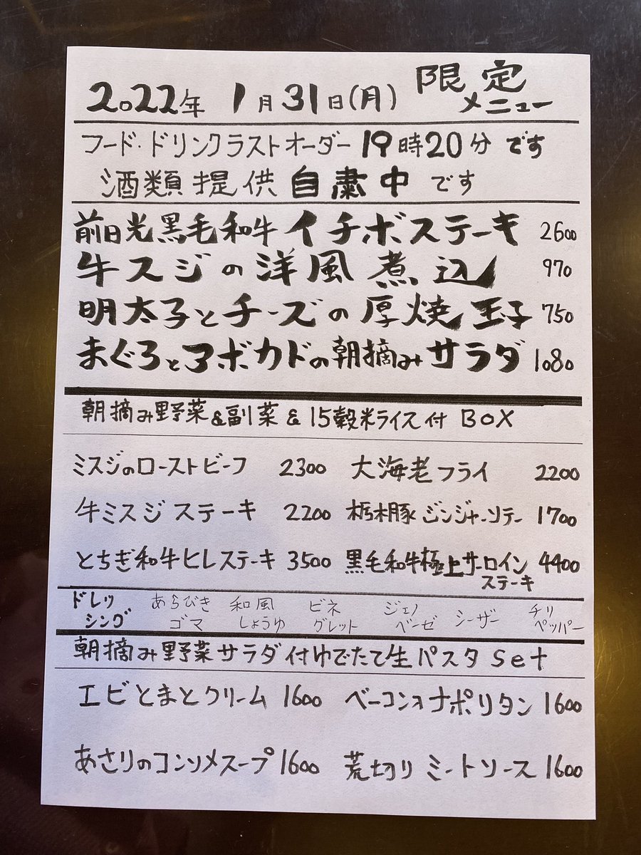 本日の限定 #テイクアウト メニューです。本日も、時短営業です。19時20分 フードドリンクラストオーダー20時00分 ク...