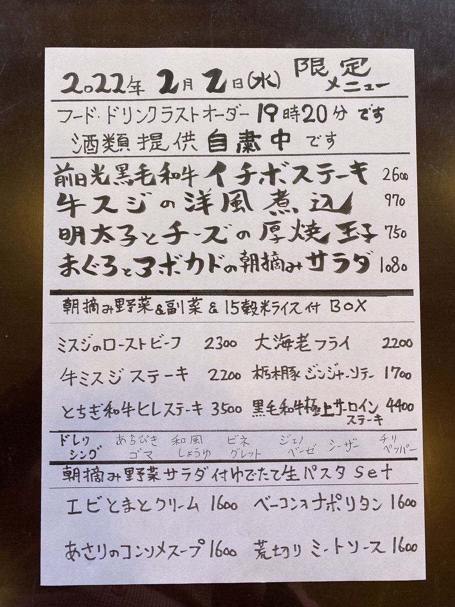 本日の限定& #テイクアウト メニューです。本日も、時短営業です。